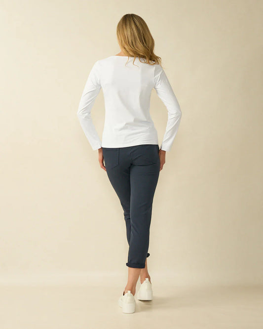 Cotton Stretch Straight Leg Trousers in Sand, Navy & Taupe