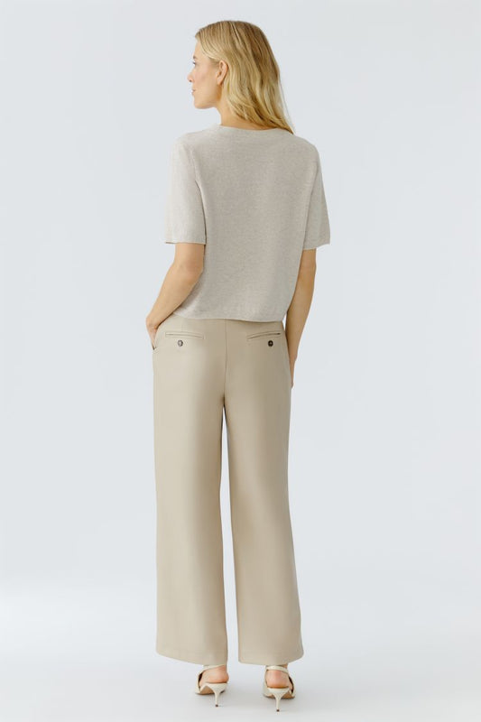 Short Sleeve Pleather Pullover - Beige