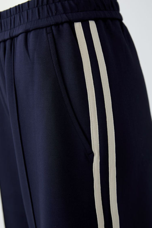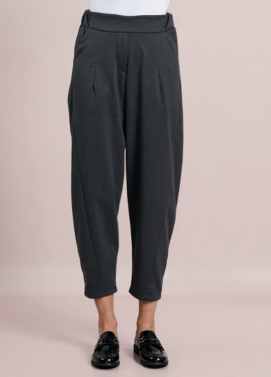 Cotton Barrel Style Cropped Trousers in Beige & Black