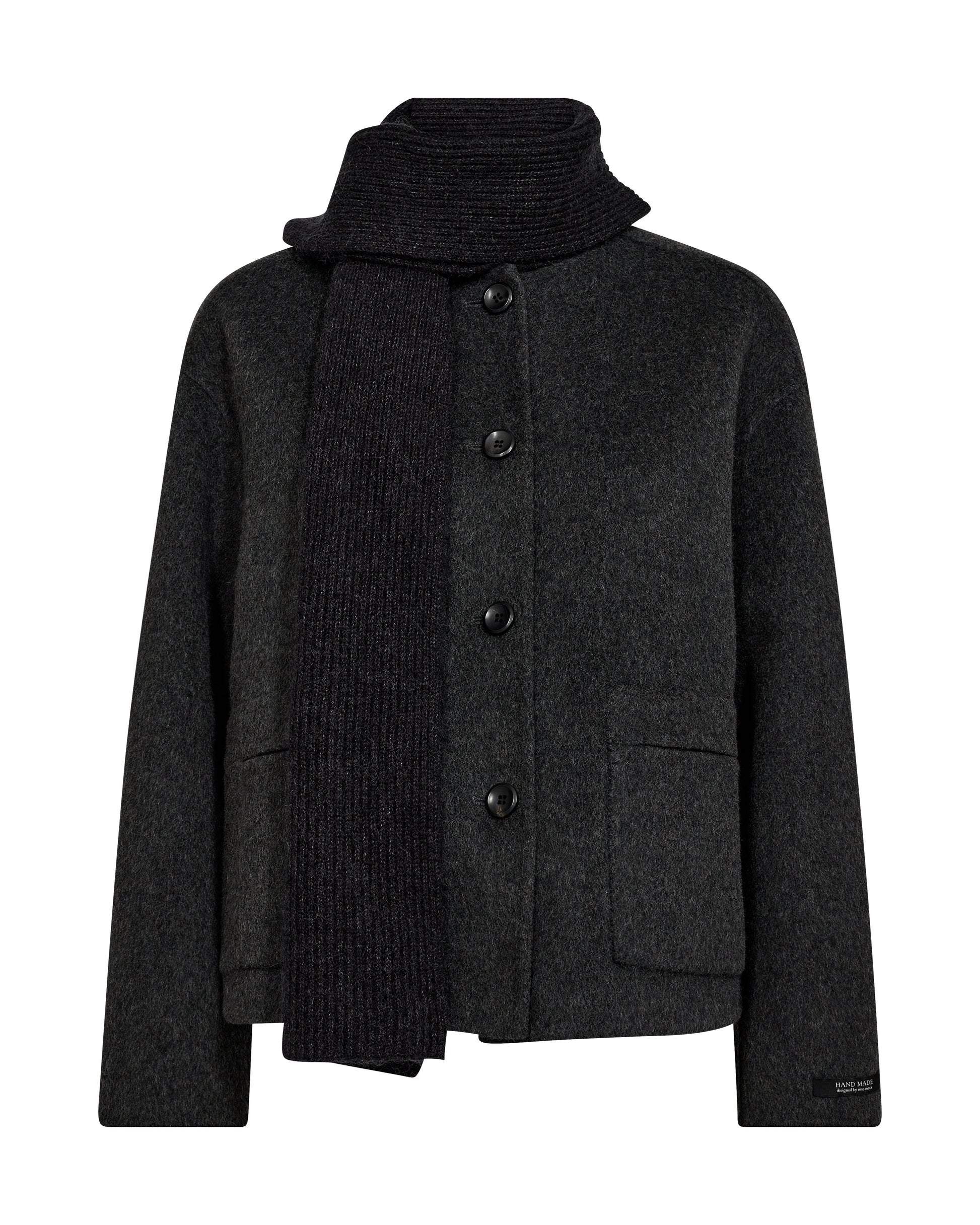 This beautifully crafted short wool jacket exudes timeless elegance with its sophisticated mélange quality and clean o-neck design. Handmade with exceptional attention to detail, it features a chic button closure and practical pockets for effortless styling. Perfect for layering, this jacket adds a refined touch to any outfit, making it a true wardrobe staple.