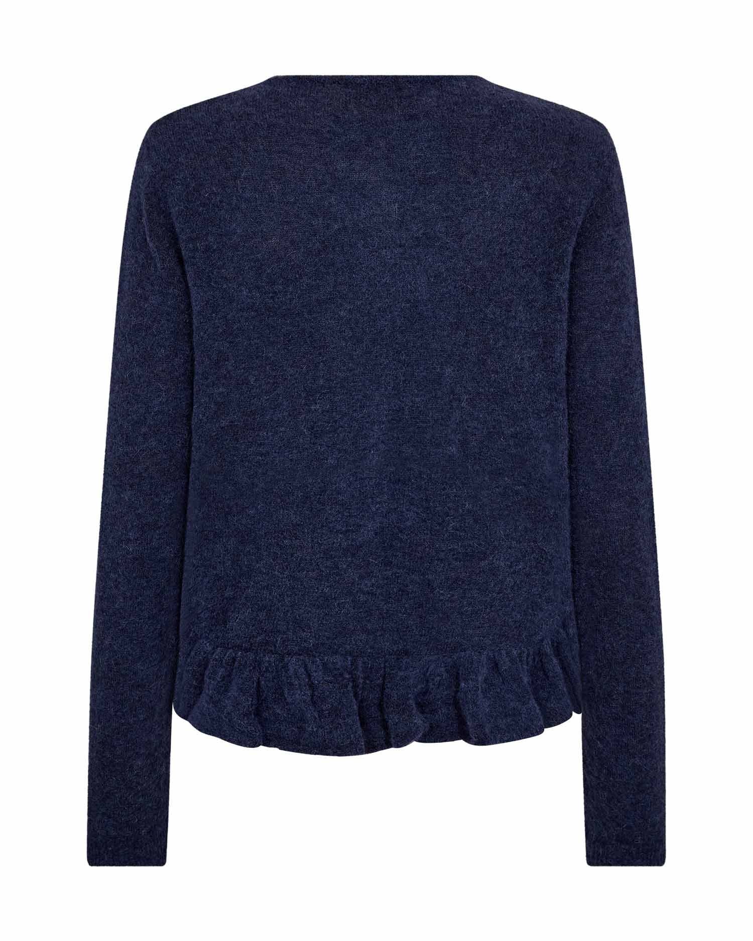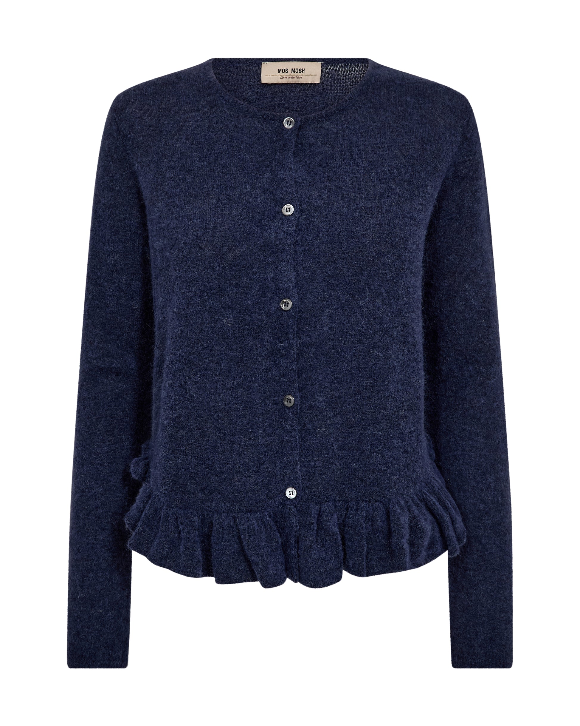 Elevate your everyday wardrobe with this stunning Mos Mosh Mape Alice Cardigan in rich crown blue. Designed for effortless sophistication, it features a classic button closure down the front for versatile styling and long sleeves that transition seamlessly from season to season. The charming ruffle detail at the hem adds a touch of feminine elegance. A timeless piece that combines comfort with contemporary style.
