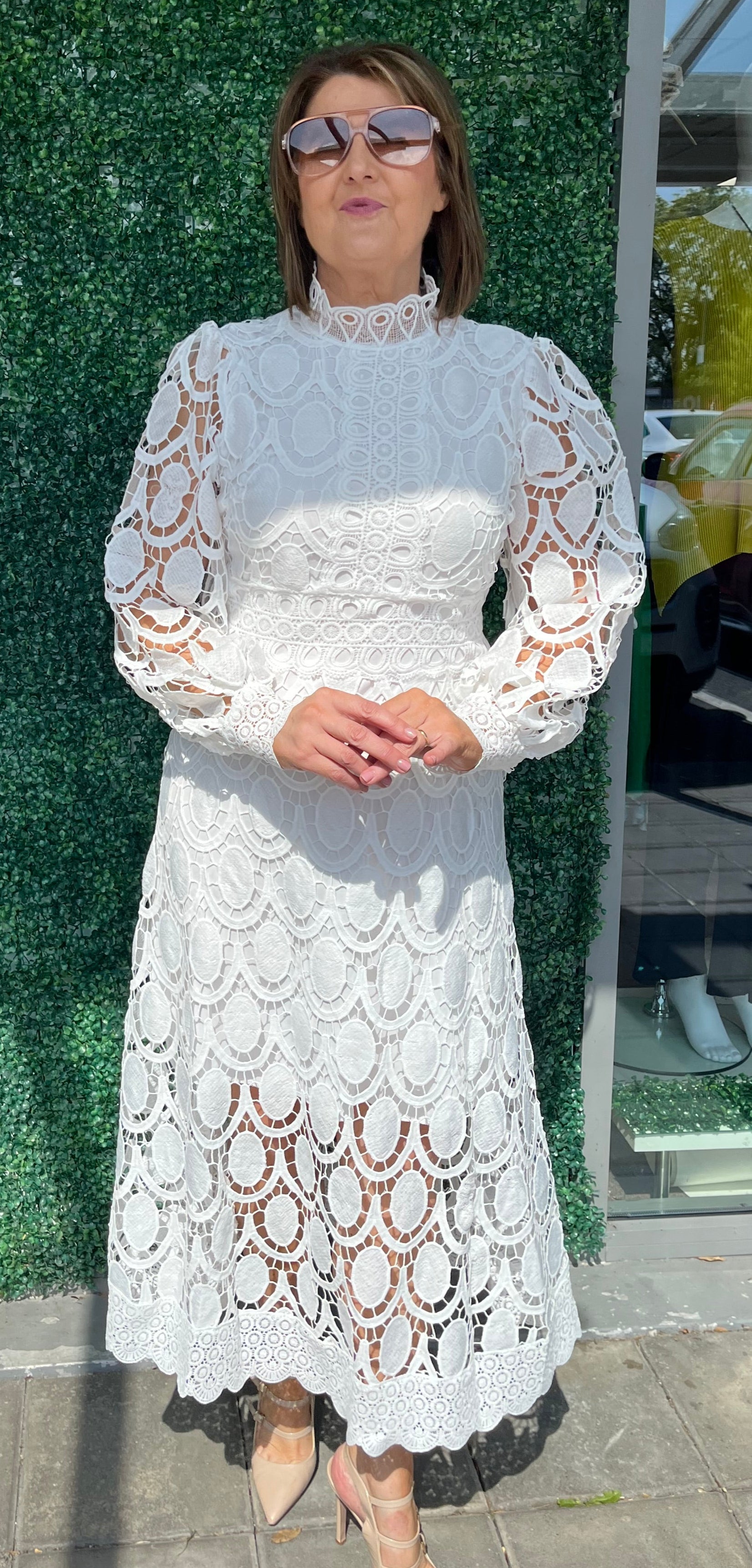 Get ready to make a statement with the Azaka Lace Dress. This elegant dress in black, white, and magenta is perfect for any special occasion. With its classic lace design, you'll stand out in style while feeling confident and sophisticated. Upgrade your wardrobe and turn heads with this must-have piece.