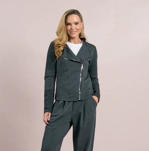 Elevate your style with this Deck Mulberry Biker Jacket featuring a bold asymmetric zip for a modern edge. Crafted to combine classic biker attitude with contemporary design, it offers a flattering fit and distinctive detailing. Perfect for adding confidence and individuality to any outfit, this jacket is your go-to for both day and night wear.