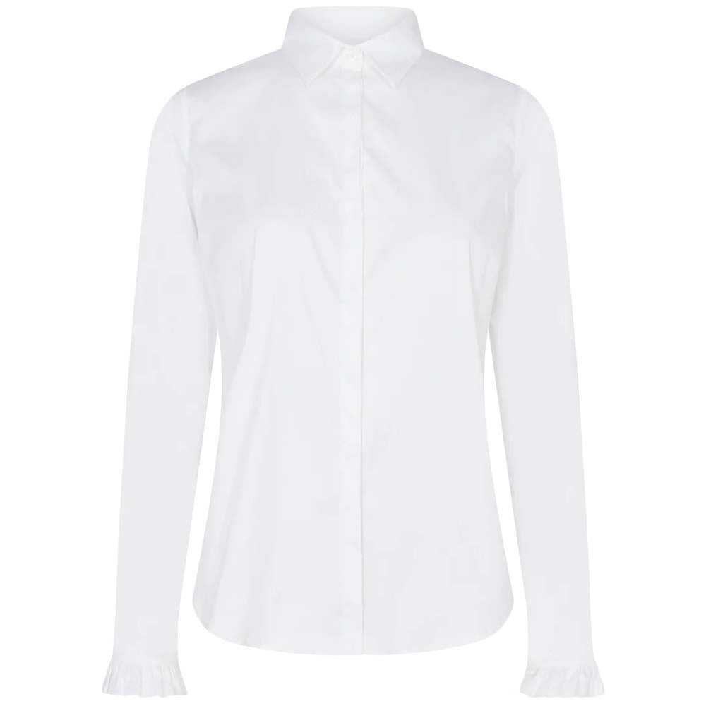 Looking to add a feminine touch to your outfit? Cut in a flattering slim fit, crafted in the softest stretchy fabric with a classic collar, feminine ruffled cuffs, and classic button closure. Style it with tailoring and let the ruffled cuff peep out from the sleeves.