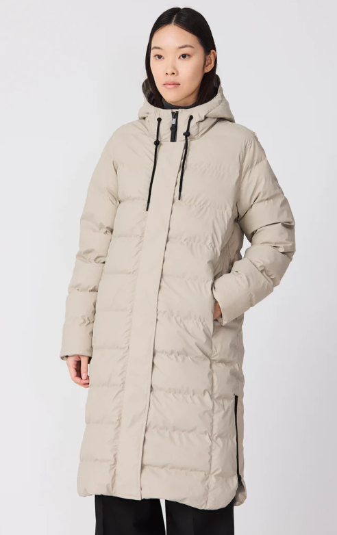 With its fully taped seams and straight fit, the Puddle Women's Waterproof Puffer Coat protects you from the elements in style from head to toe. Made with our iconic waterproof polyurethane fabric, this women's coat is padded with a layer of down-free insulation and designed with seamless chambers. Tailor this coat to your needs with the added feature of waterproof side zippers for added comfort.