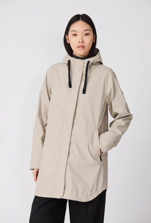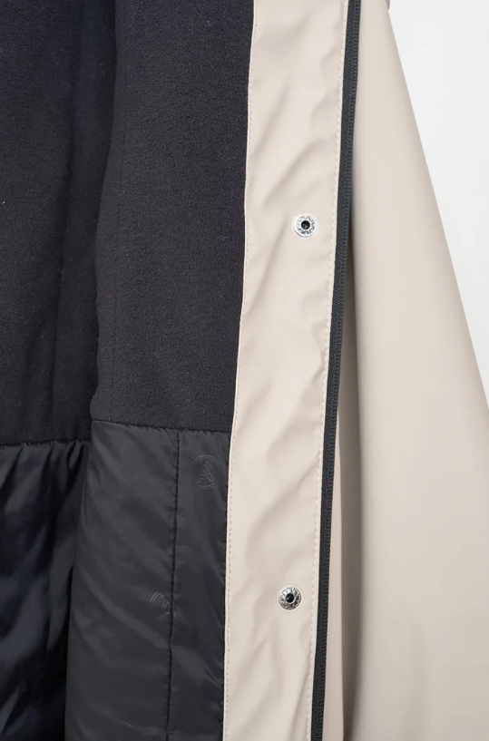 The Snow jacket has a modern, functional style combining practicality with a sleek design. Fully seam-taped, it is cut from our iconic 100% waterproof matte PU, and it features a featherless and breathable lighweight insulation layer. With a curved hemline and a velvet lining from shoulders to waist, this contemporary and versatile style is suitable for everyday wear.