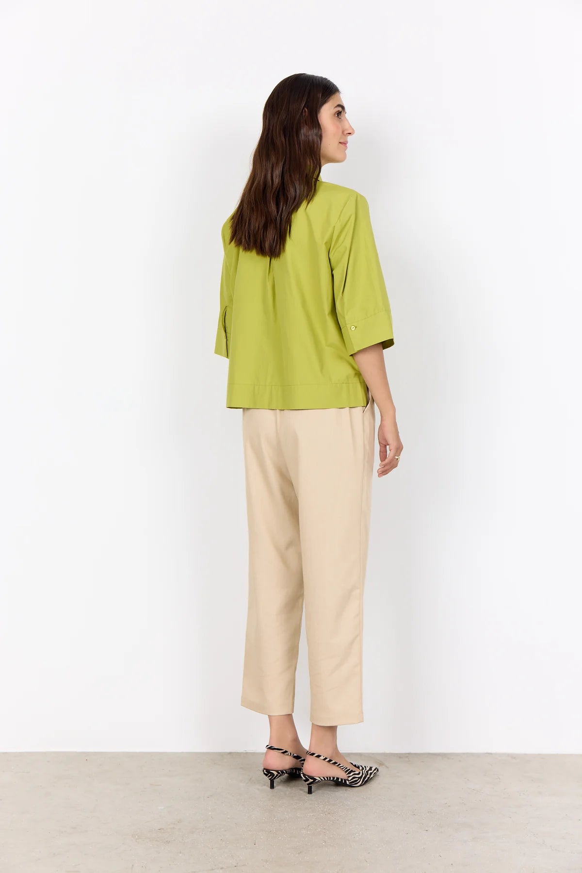 SC-NETTI 118 Shirt is crafted with 53% recycled polyester and 47% organic cotton. The shirt features a classic collar, concealed buttons, and a straight hem, along with short wide sleeves. Pair it with tailored trousers or a casual skirt for an elegant style.